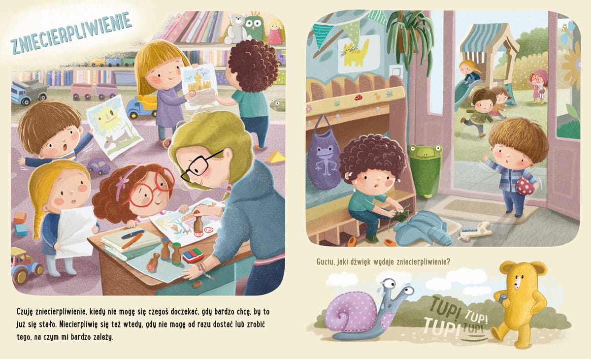 Podczas lektury książki mały czytelnik znajdzie się w wielu dobrze znanych sobie sytuacjach. Razem z Felusiem i Guciem nauczy się rozpoznawać, nazywać i akceptować swoje emocje. Będzie też wiedział, skąd się biorą, w jaki sposób można je wyrażać i jak sobie z nimi radzić.
