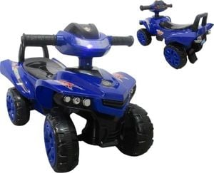 Jeździk, który swoim kształtem przypomina quada z pewnością przypadnie do gustu miłośnikom terenowych wojaży. Nasz pojazd jest idealny dla dzieci w wieku 1-3 lat, dla których doskonale spełni się jako pierwszy, własny pojazd. Na kierownicy znajdują się przyciski aktywujące dźwięk klaksonu oraz muzykę - dodatkowo urozmaici to zabawę!