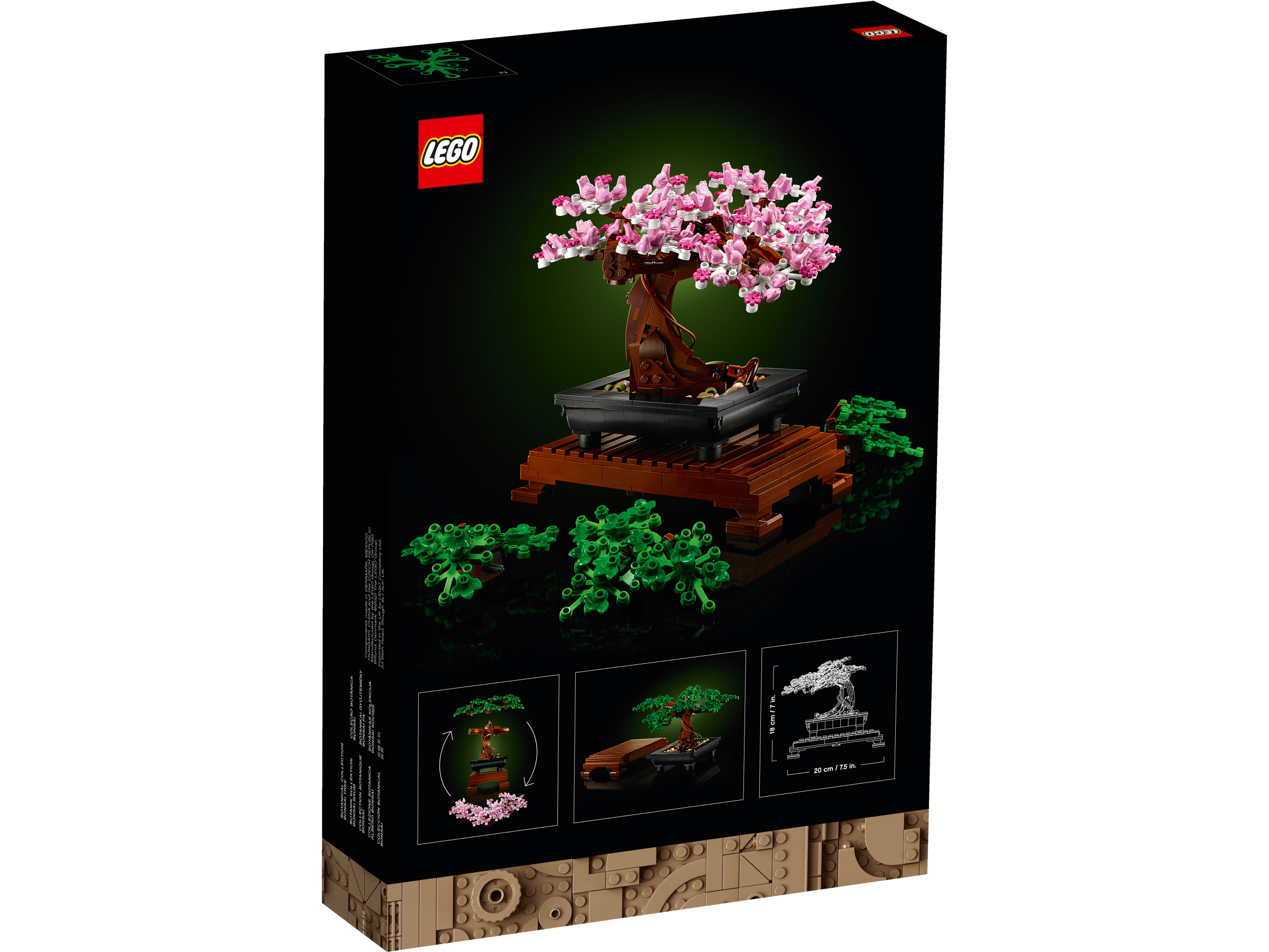 - Zestaw LEGO® Drzewko bonsai jest częścią botanicznej kolekcji LEGO. Modele wchodzące w jej skład zawierają elementy wykonane z plastiku pochodzenia roślinnego, pozyskanego z trzciny cukrowej ze zrównoważonego źródła.