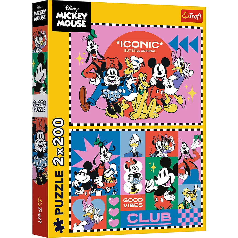 Czas z przyjaciółmi to puzzle przedstawiające kolorowe kolaże z kultowymi bohaterami Disneya, takimi jak: Myszka Miki, Minnie, Kaczor Donald, Daisy, Goofy i Pluto. Każda z układanek pozwoli stworzyć obrazek o wymiarach 410x275 mm.