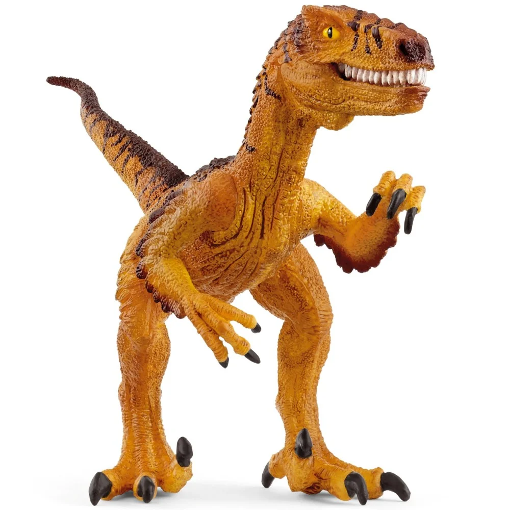 Welociraptor robi wrażenie wszędzie tam, gdzie się pojawia. Ten przerażający dinozaur ma żółto-pomarańczową skórę, a jego grzbiet zdobią ciemnobrązowe, tygrysie paski. Chociaż ma pióra, nie potrafi latać. Jest za to niezłym biegaczem! W paszczy drapieżnika znajdziesz rząd ostrych zębów, którymi welociraptor uwielbia się popisywać, groźnie otwierając i zamykając szczęki. Hmm, a może po prostu się uśmiecha?
