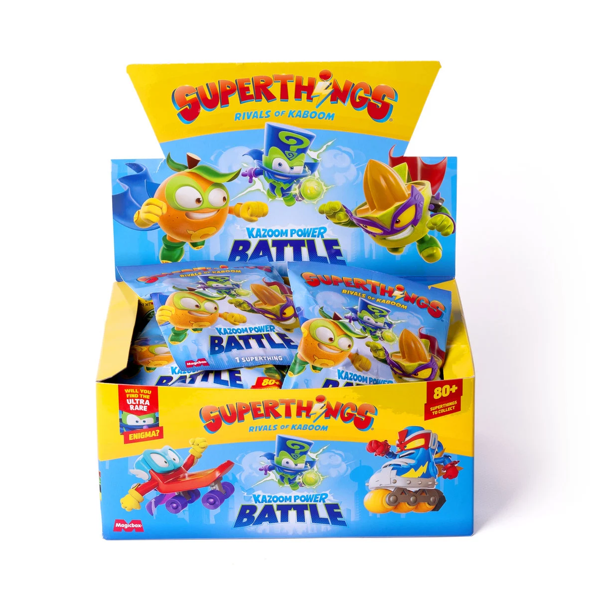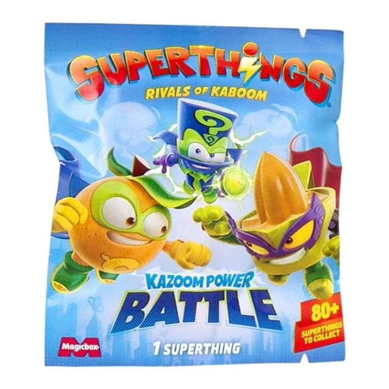 Najnowsza linia Super Things Kazoom Power Battle to 14. odsłona legendarnych figurek, które zamieszkały w Kaboom City! Tym razem do zebrania jest aż 80 zupełnie nowych figurek, wśród których można znaleźć unikatową figurkę Enigmy. W każdej saszetce znajduje się jedna figurka, której wygląd pozostaje niespodzianką - czy uda Ci się trafić na ultrarzadki wzór bohatera Super Things?