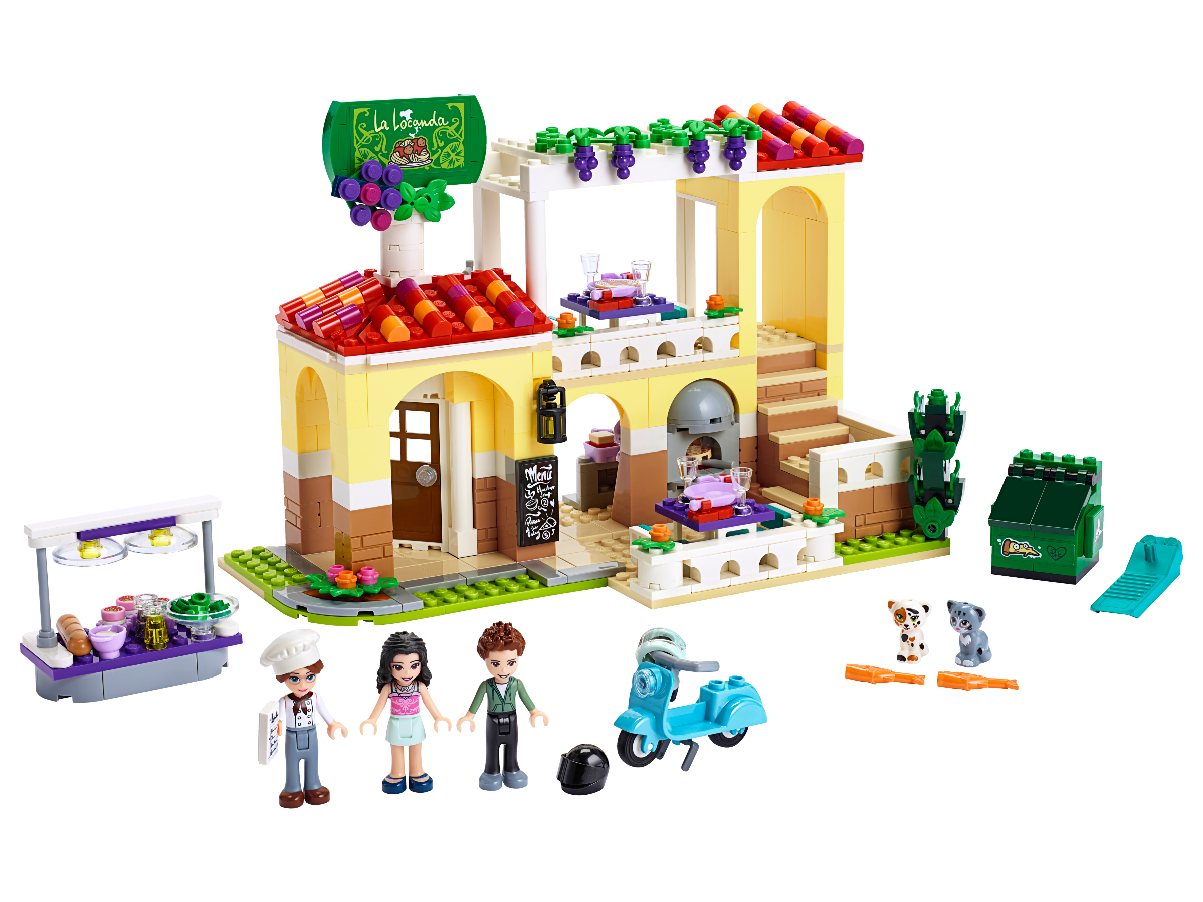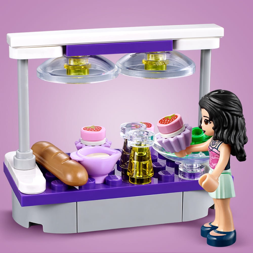 - Zawiera 3 minilaleczki LEGO®: Emmę i Ethana z LEGO Friends, szefa kuchni oraz dwa koty LEGO.