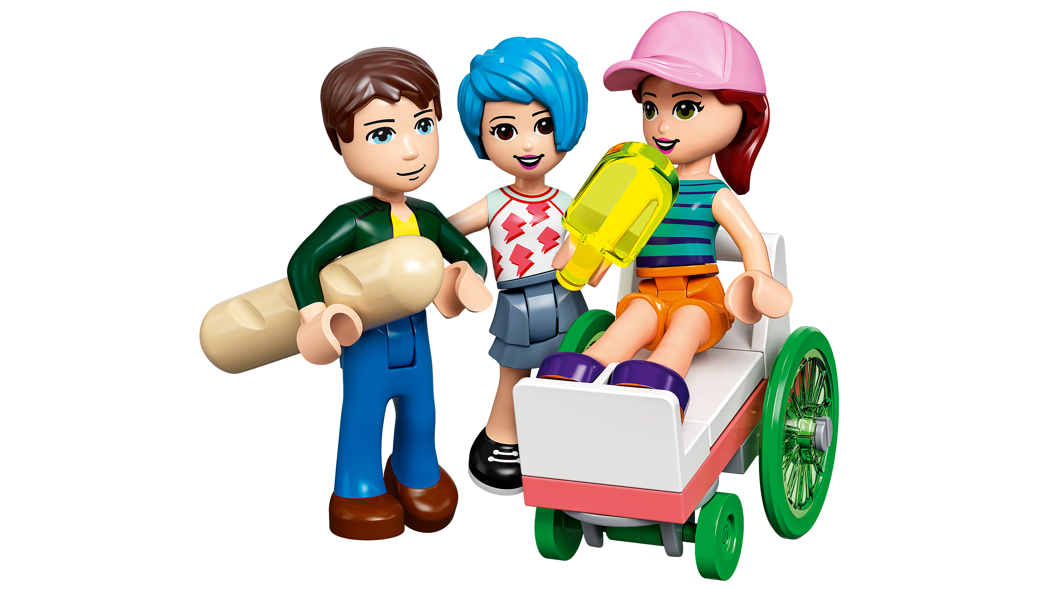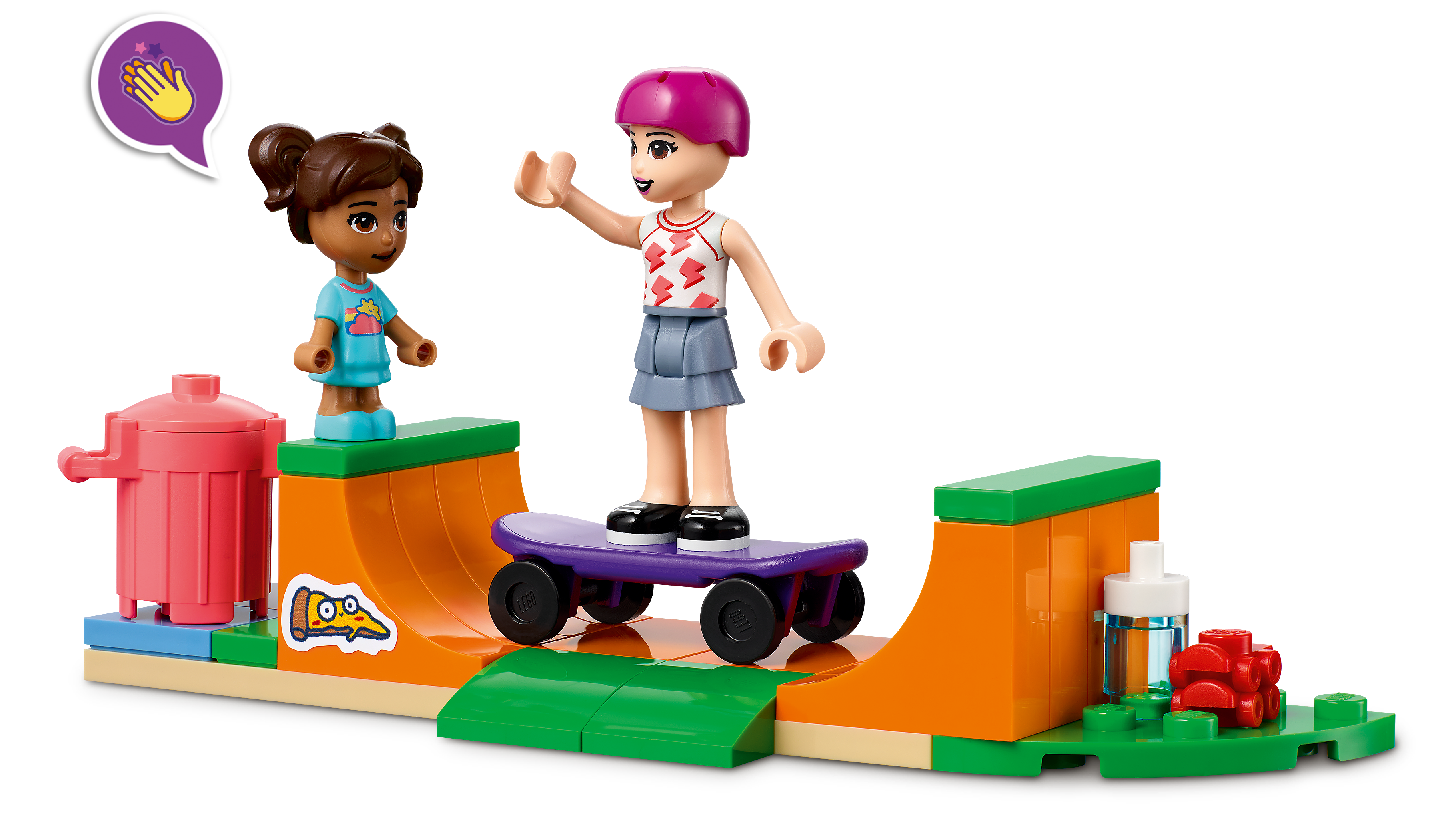 - Wiele godzin kreatywnej zabawy — Fani serii LEGO® Friends mogą zrobić zakupy w sklepie spożywczym, przejść metamorfozę w salonie fryzjerskim, pracować w domowym biurze lub spędzić czas w skateparku ze znajomymi