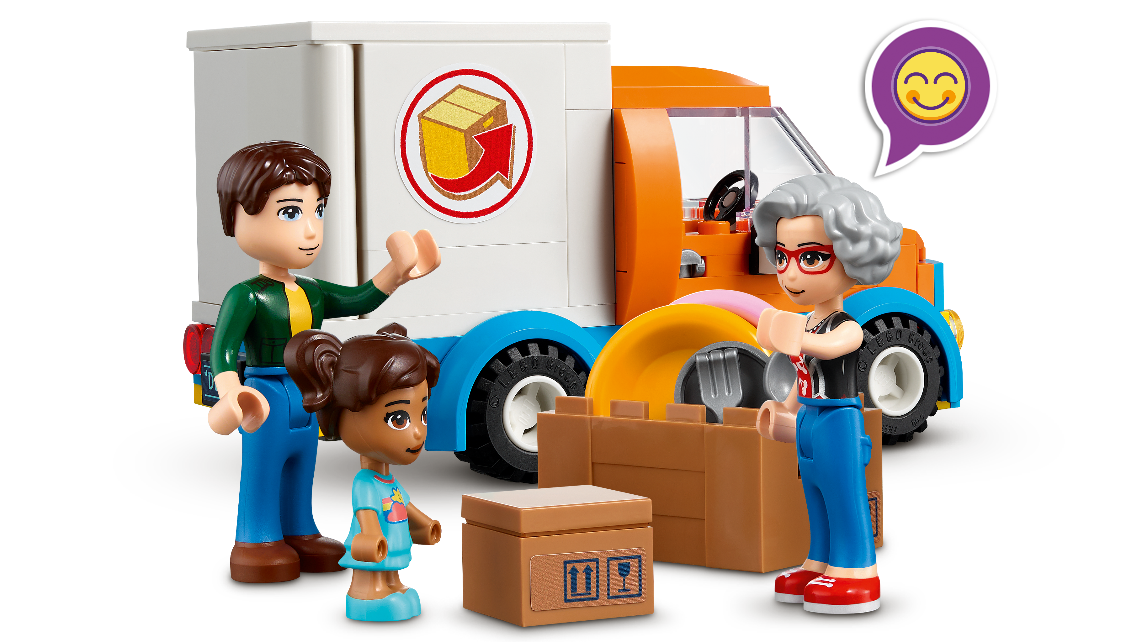 - Społeczność, wśród której każdy jest mile widziany — Zestaw zawiera osiem postaci i cztery figurki zwierząt, a także ciężarówkę do przeprowadzek, dzięki której dzieci mogą pomóc nowej rodzinie wprowadzić się do dzielnicy