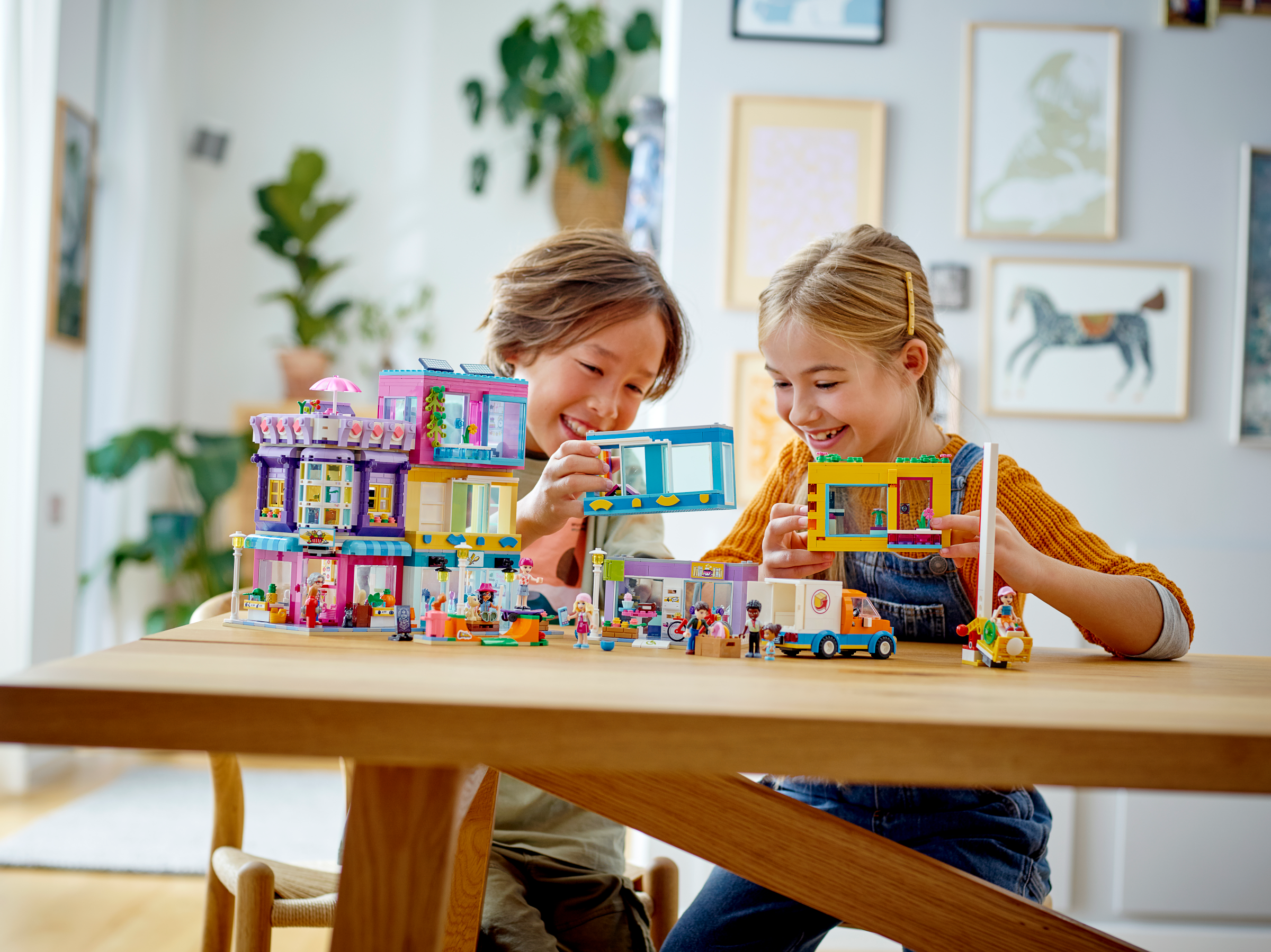 - Przyjazna społeczność — Zapoznaj młodych konstruktorów z zestawami LEGO® Friends z miastem Heartlake, gdzie wszyscy są mile widziani