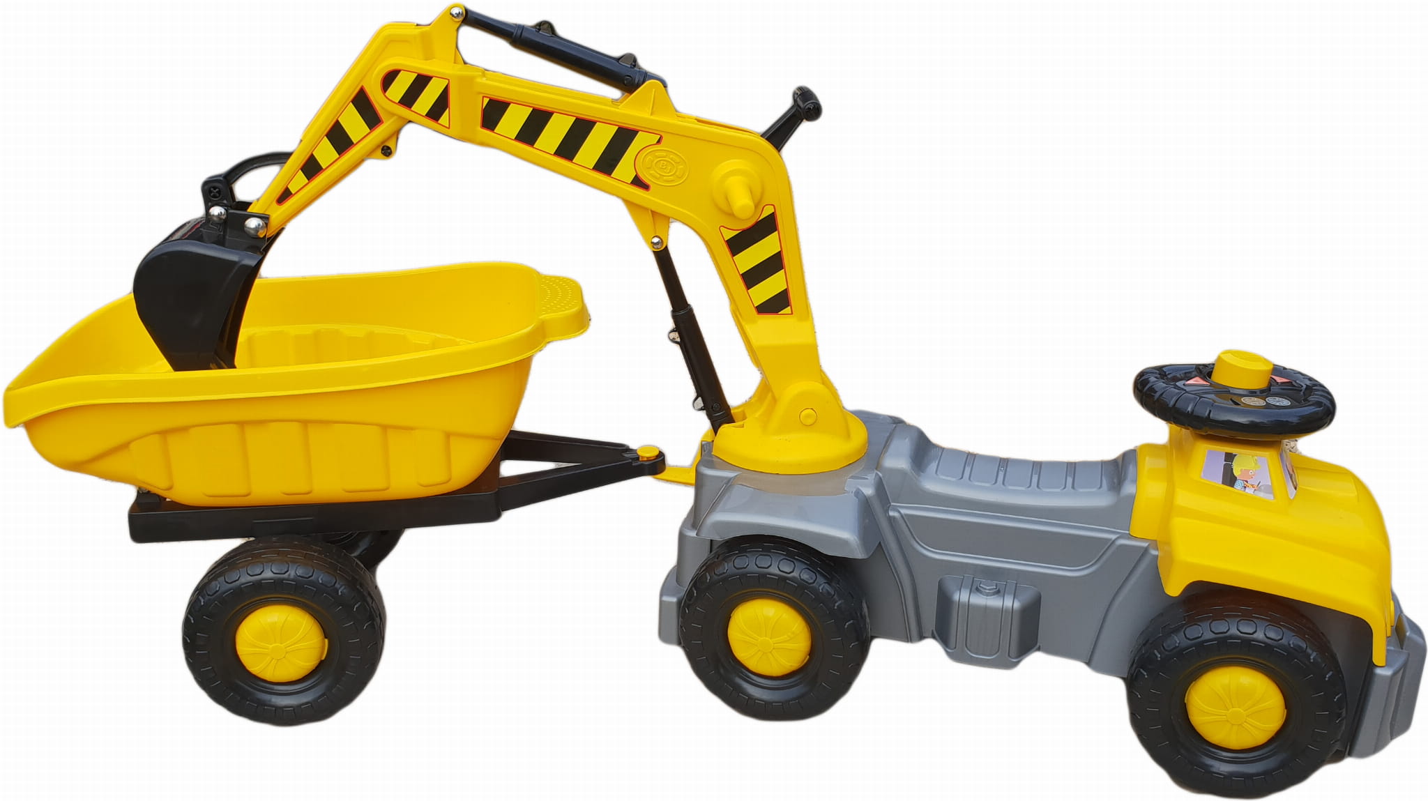 - Koparka, pełniąca również funkcję jeździka, zapewniająca wszechstronną zabawę.