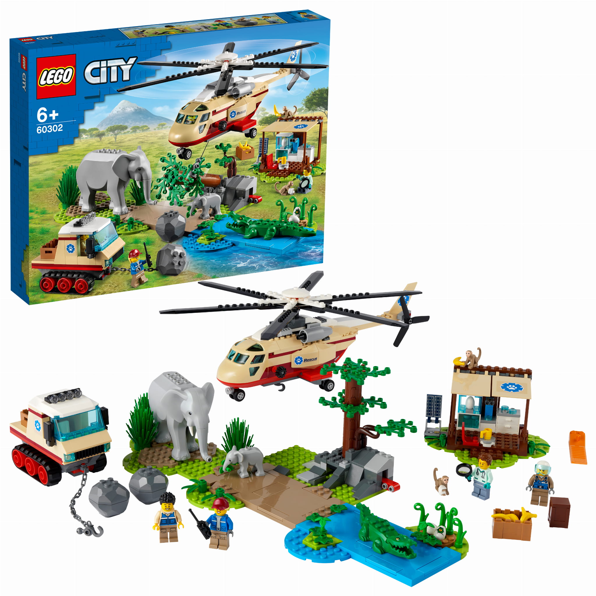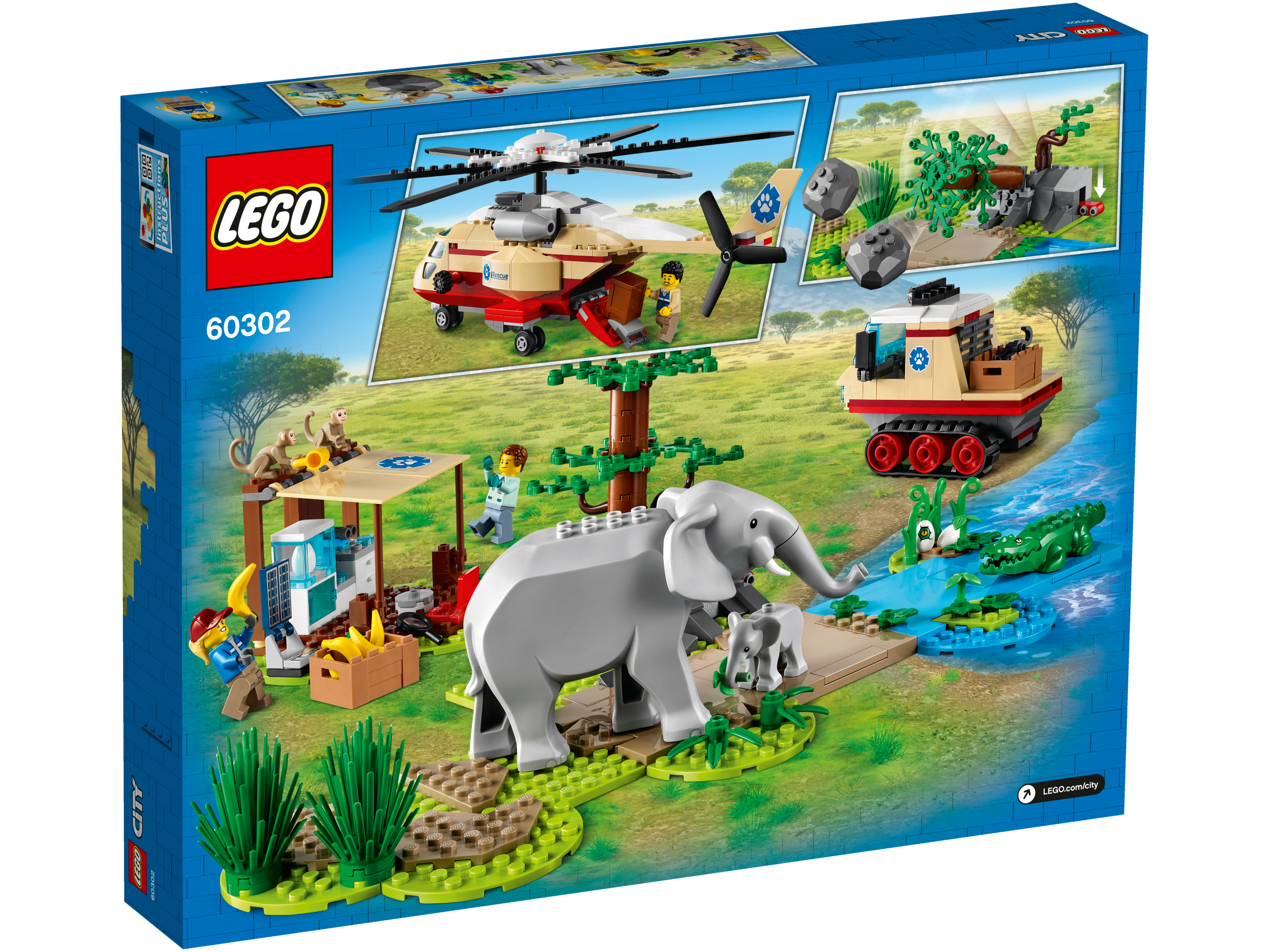 - Zestaw LEGO® City Na ratunek dzikim zwierzętom (60302) zawiera mnóstwo ekscytujących funkcji, figurek znanych zwierząt i inspirujących postaci, które dają nieograniczone możliwości zabawy w ratowanie zwierząt.