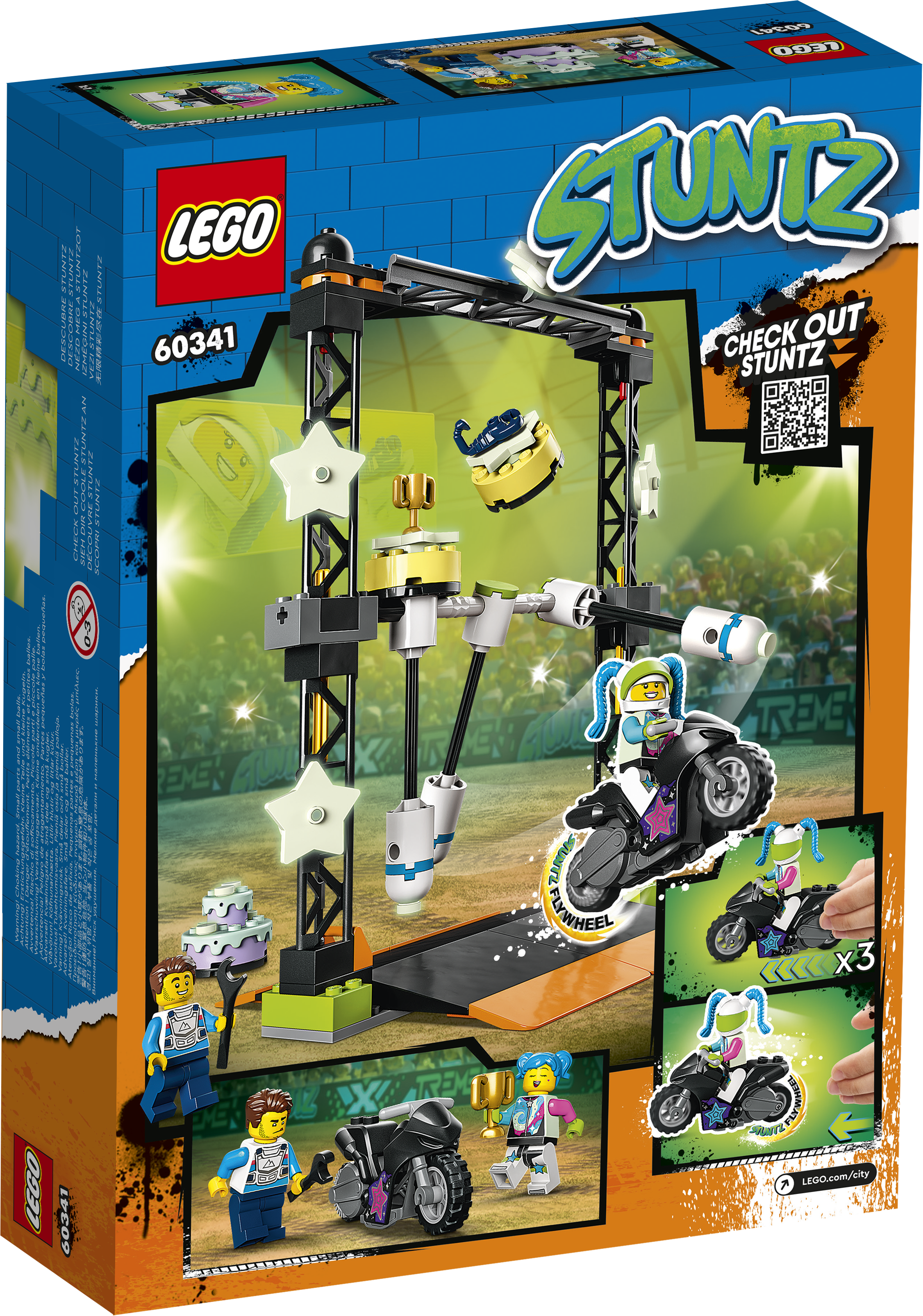 Z zestawami LEGO® City Stuntz dzieci znajdą się w samym środku akcji.Do dyspozycji mają motocykle kaskaderskie napędzane kołem zamachowym, realistyczne konstrukcje oraz fajne postacie, które inspirują do pomysłowego odgrywania ról opartych na rzeczywistych sytuacjach.