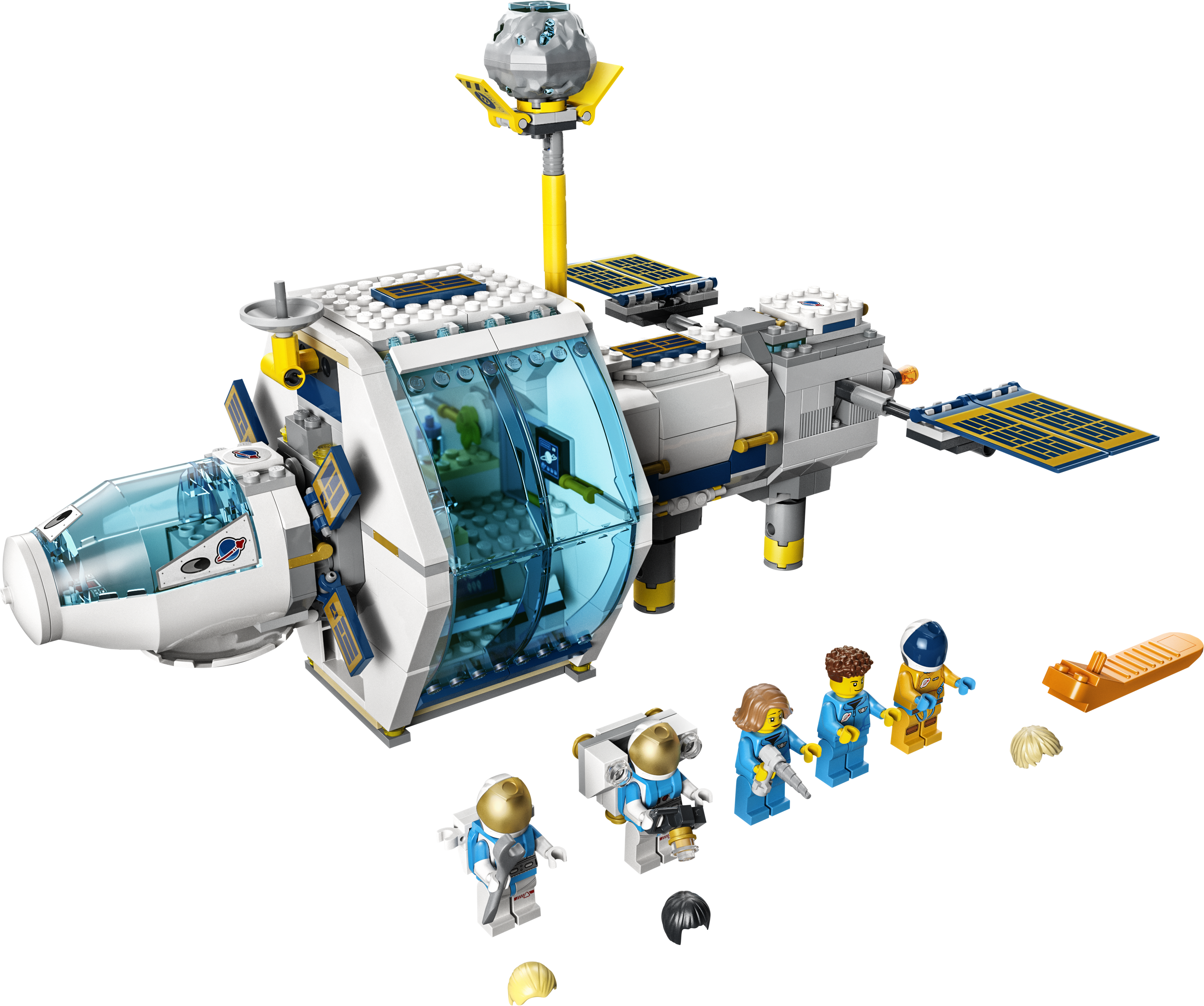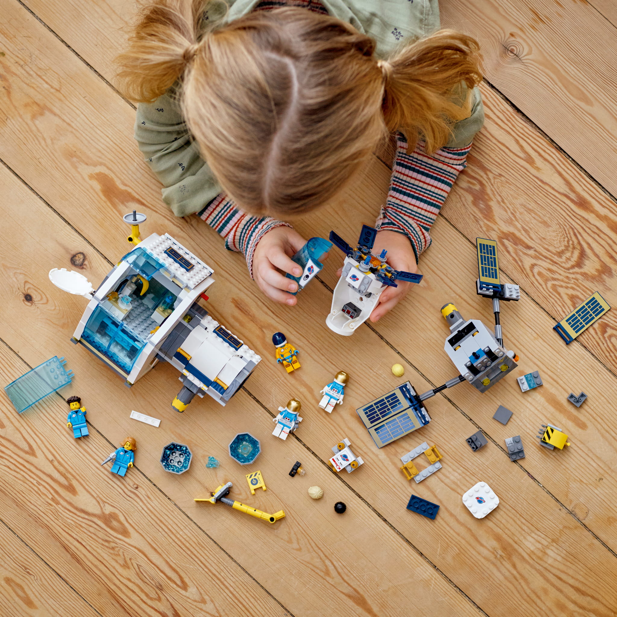 - Kosmiczny zestaw LEGO® City — model LEGO City Stacja kosmiczna na Księżycu (60349) oferuje mnóstwo funkcji inspirowanych pracą NASA, które zachęcają do pomysłowej zabawy w kosmosie