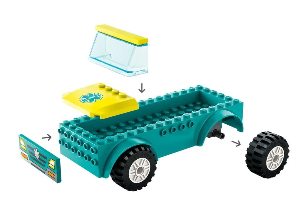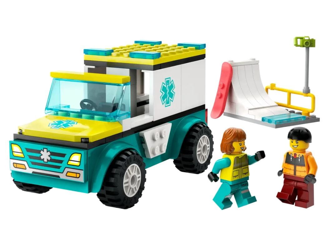 - Zestaw z karetką - dołącz do małych budowniczych podczas zabawy zestawem LEGO City Karetka i snowboardzista dla czterolatków i starszych dzieci