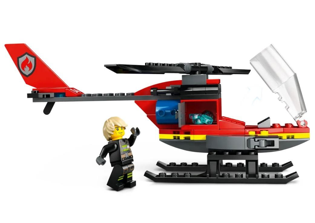 Zestawy LEGO City sprawią, że dzieci znajdą się w centrum akcji podczas nieograniczonej zabawy szczegółowymi pojazdami, budynkami i inspirującymi postaciami. Helikopter strażacki można łączyć z innymi zestawami z serii LEGO City (sprzedawanymi osobno), aby stworzyć jeszcze więcej możliwości zabawy.