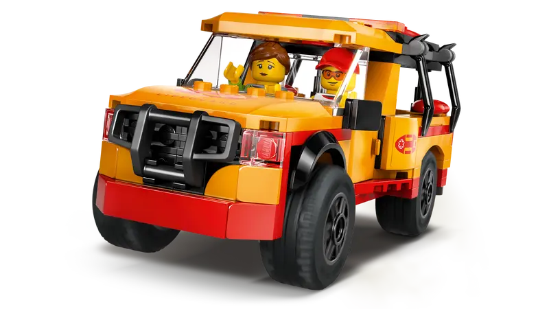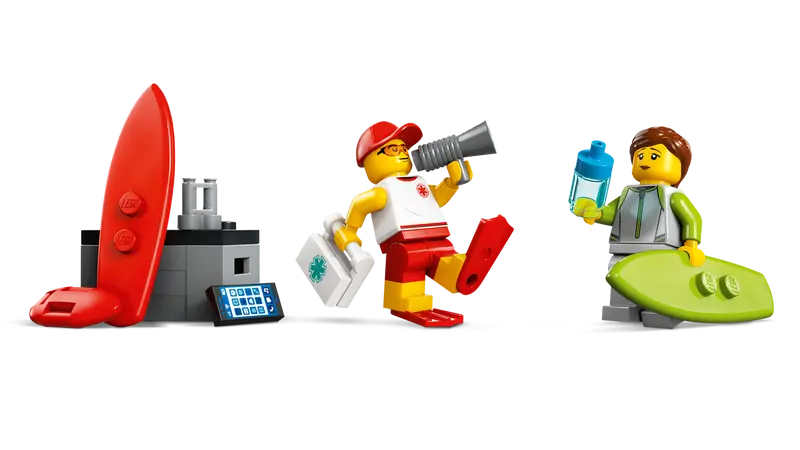 - Zestaw z pojazdem ratunkowym — dzięki zestawowi LEGO® City Furgonetka ratowników plażowych dzieci w wieku od sześciu lat mogą zanurzyć się w pełnych akcji nadmorskich przygodach.