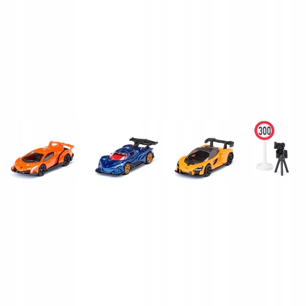 Wszystkie trzy pojazdy należą obecnie do najszybszych, najmocniejszych, najdroższych i najbardziej niezwykłych pojazdów na świecie. Młodych stróżów prawa ucieszy również to, że zestaw zawiera znak drogowy ograniczenia prędkości i fotoradar, bo jedno jest jasne – przy tak dużej mocy nawet limit 300 km/h można szybko przekroczyć!