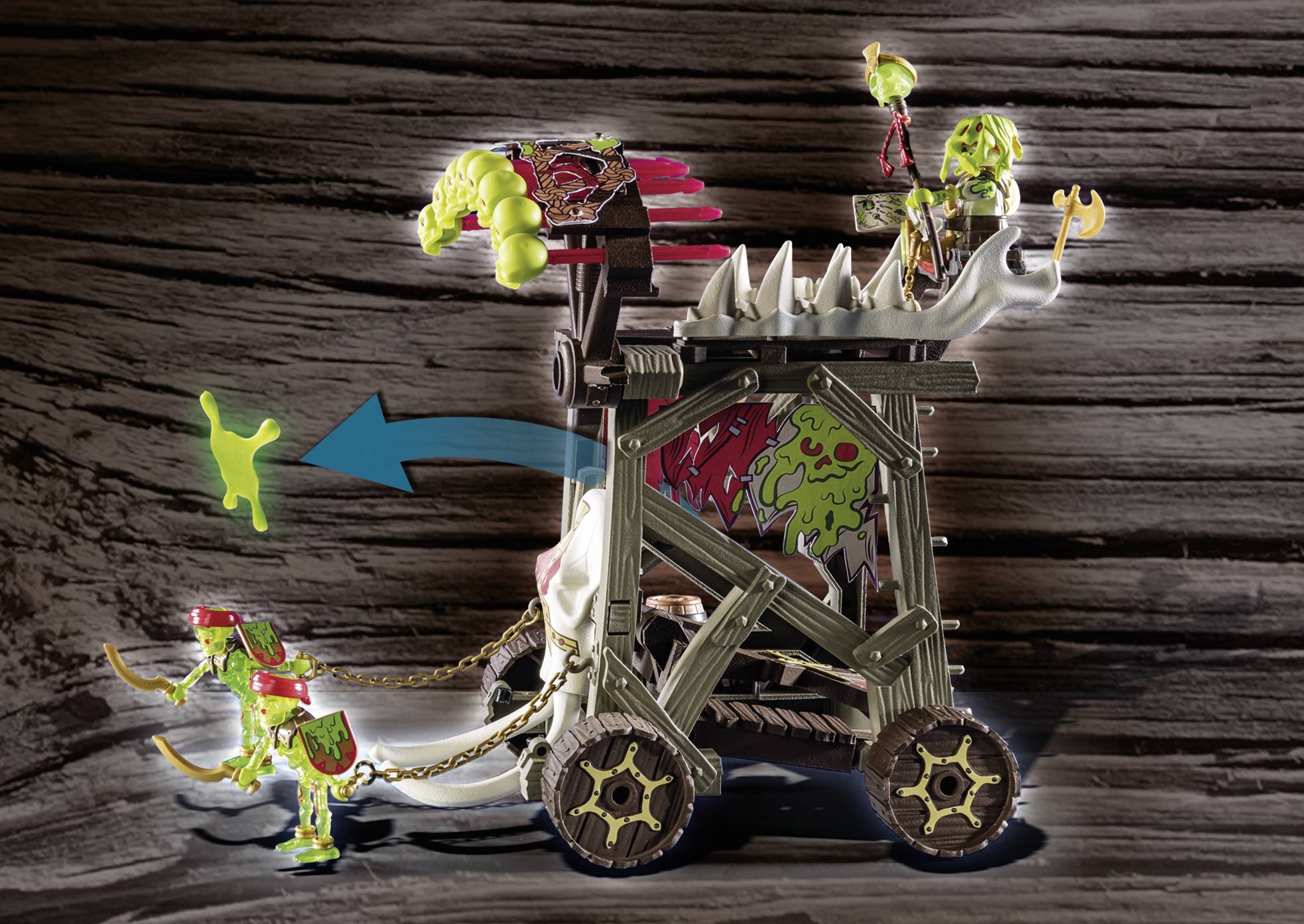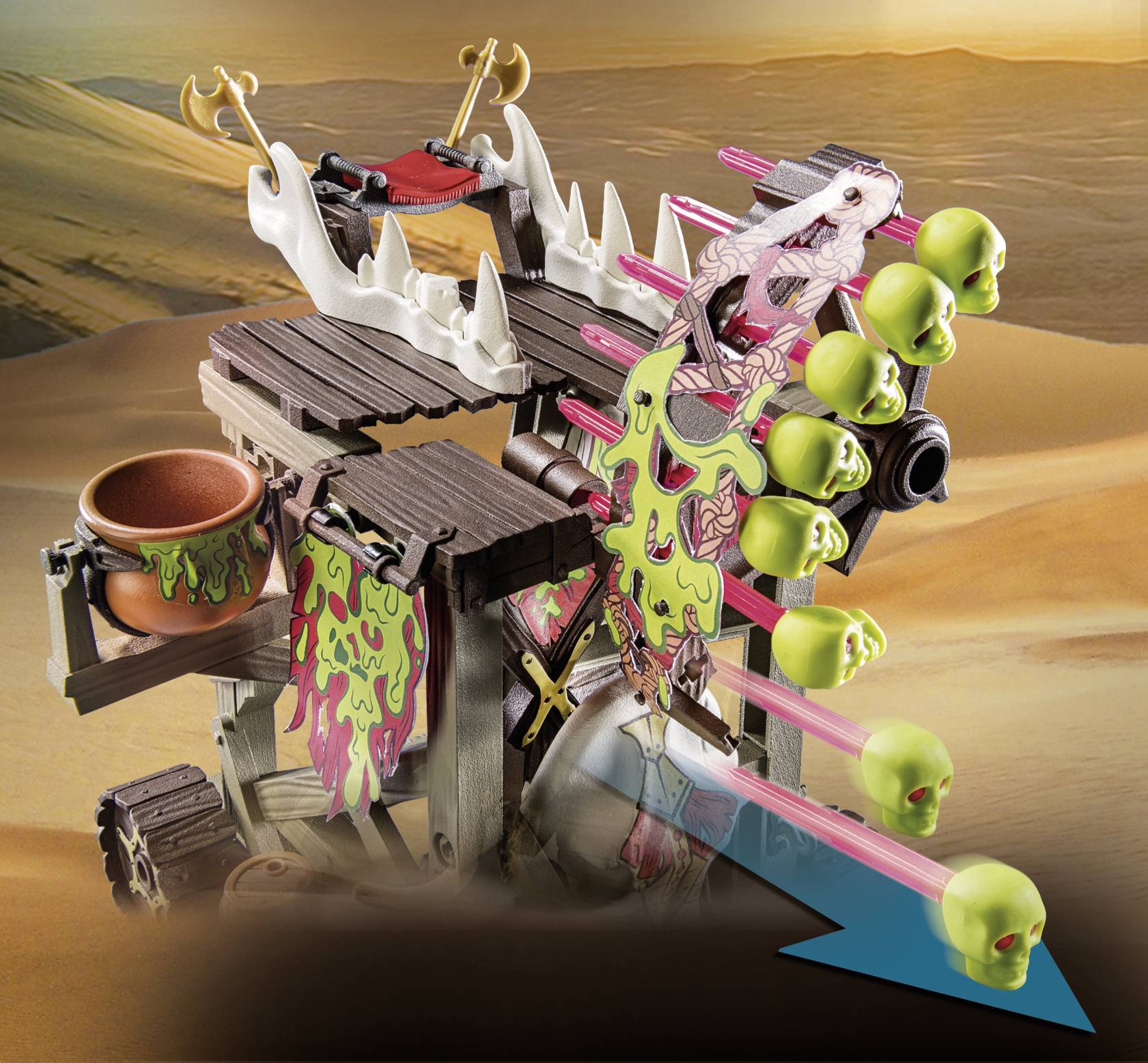 Mobilna wieża szturmowa armii szkieletów brzmi jak grzmot, gdy tylko pierwsze pociski zostaną wystrzelone w krótkich odstępach czasu. Na Tronie Grzmotu śliska substancja jest natychmiast przekształcana w niebezpieczne pociski, których żaden atakujący nie chce zostać trafiony. Z nowo opracowaną mechaniczną funkcją startu lub katapulty dla jeszcze większej zabawy!