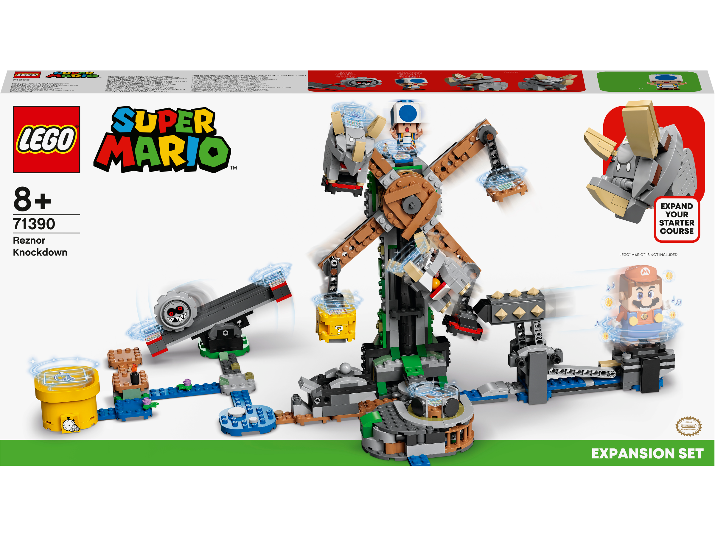 - Obracanie się, huśtanie, ratowanie niebieskiego Toada, szybkie wykonywanie wyzwań — dzieci będą zachwycone, gdy wzbogacą świat LEGO® Super Mario™ o zestaw dodatkowy Walka z Reznorami (71390).