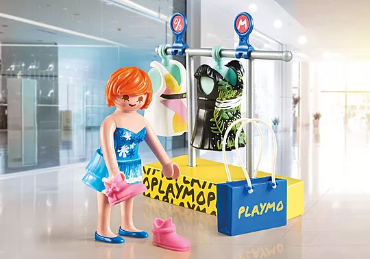 Zakupowe szaleństwo z zestawem Na zakupach PLAYMOBIL. Tutaj możesz przymierzać ubrania i buty do woli i wybrać najpiękniejszy strój. To po prostu wspaniała zabawa! Idealny prezent dla kreatywnych dzieci w wieku od 4 lat.
