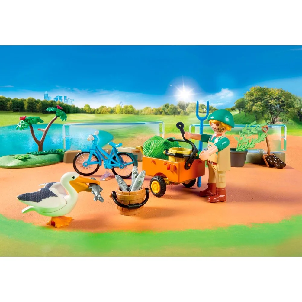 Z okazji jubileuszu zestaw przygoda w zoo jest teraz dostępny w nowej, ciekawej odsłonie. Odwiedzający zoo mogą z bliska obserwować rodzime i egzotyczne zwierzęta. Nadszedł czas karmienia i opiekun zwierząt dostarcza żyrafom pożywienie i świeżą wodę. Tymczasem pingwiny na sąsiednim wybiegu zjeżdżają radośnie po lodowej zjeżdżalni do wody. Pięknie zaprojektowany zestaw do zabawy dla małych miłośników zwierząt. Wybiegi dla zwierząt można indywidualnie łączyć za pomocą elementów ogrodzenia.