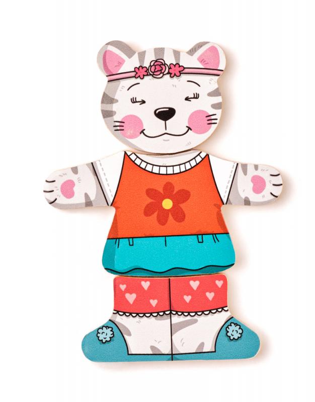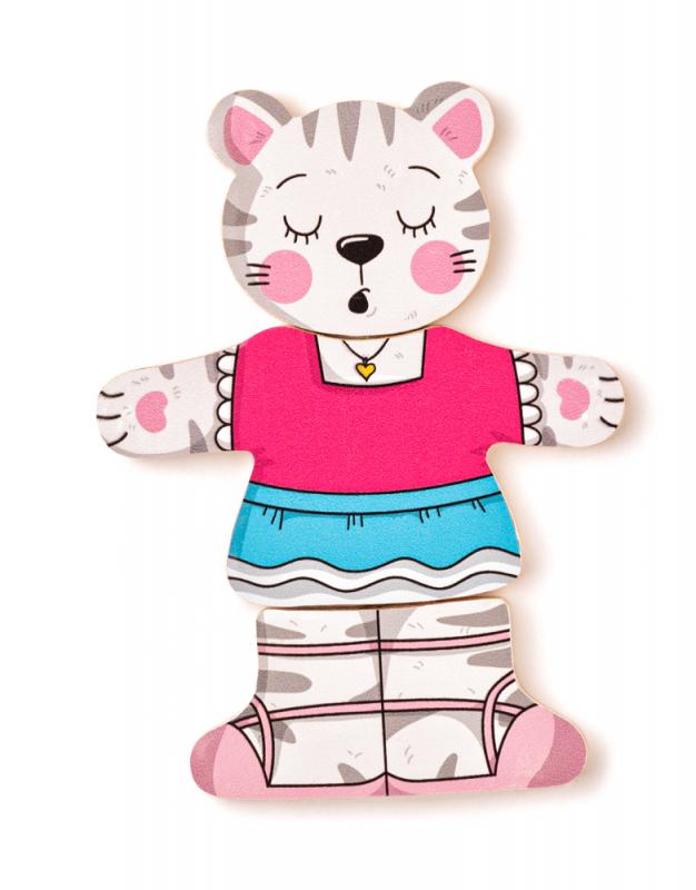 90019 Woody puzzle drewniane - Ubieranie kotka