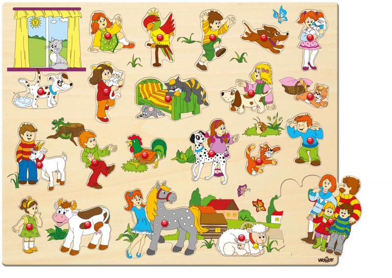 Eleganckie puzzle drewniane z uchwytami o wymiarach 45 x 35 cm. Liczba elementów: 21. Wiek: +12 miesięcy.